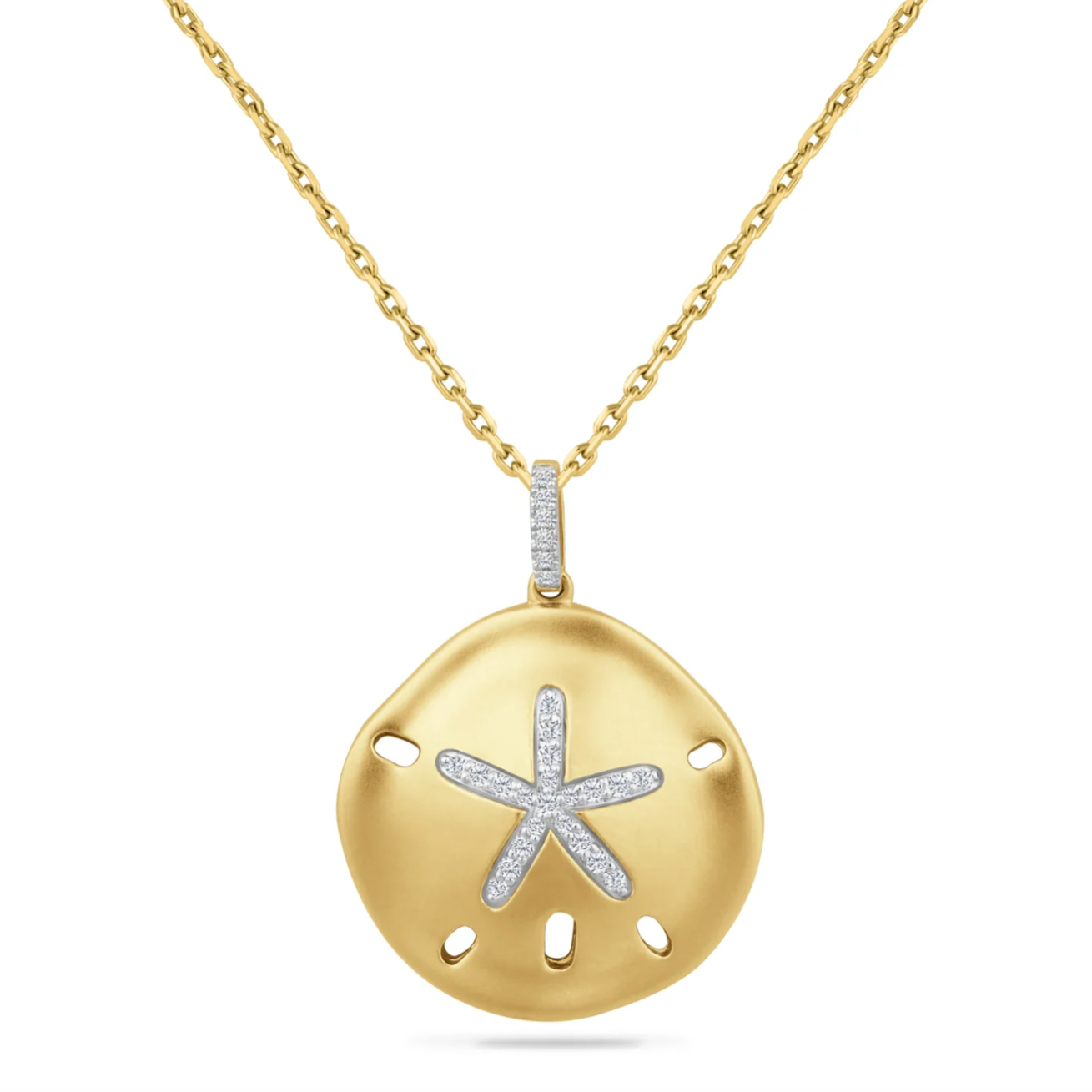 A symbol of wealth and abundance this 14k gold and diamond sand dollar is the perfect addition to the beach lovers jewelry collection.